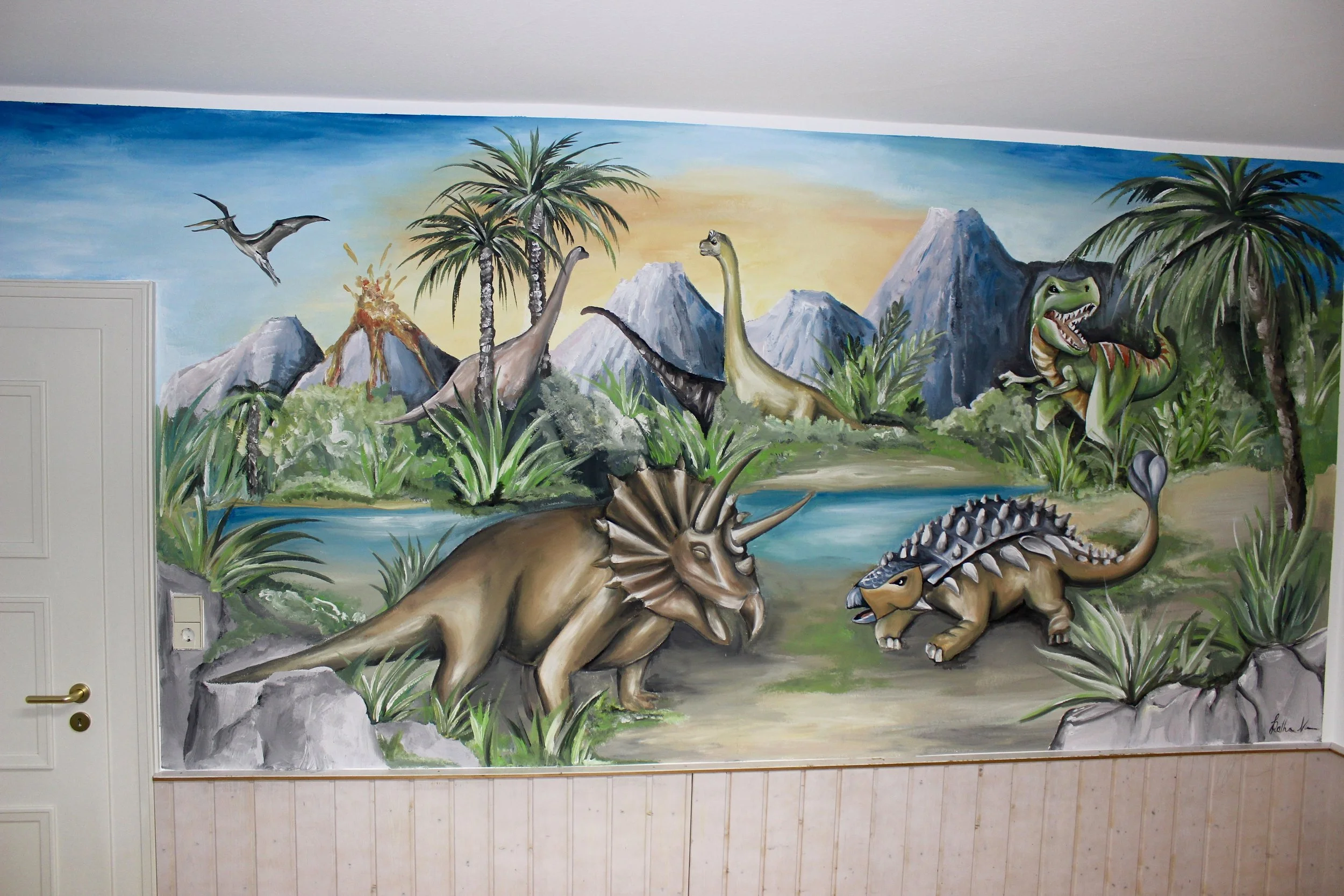Wandgemälde Dinosaurierlandschaft Voll-und Abtönfarbe